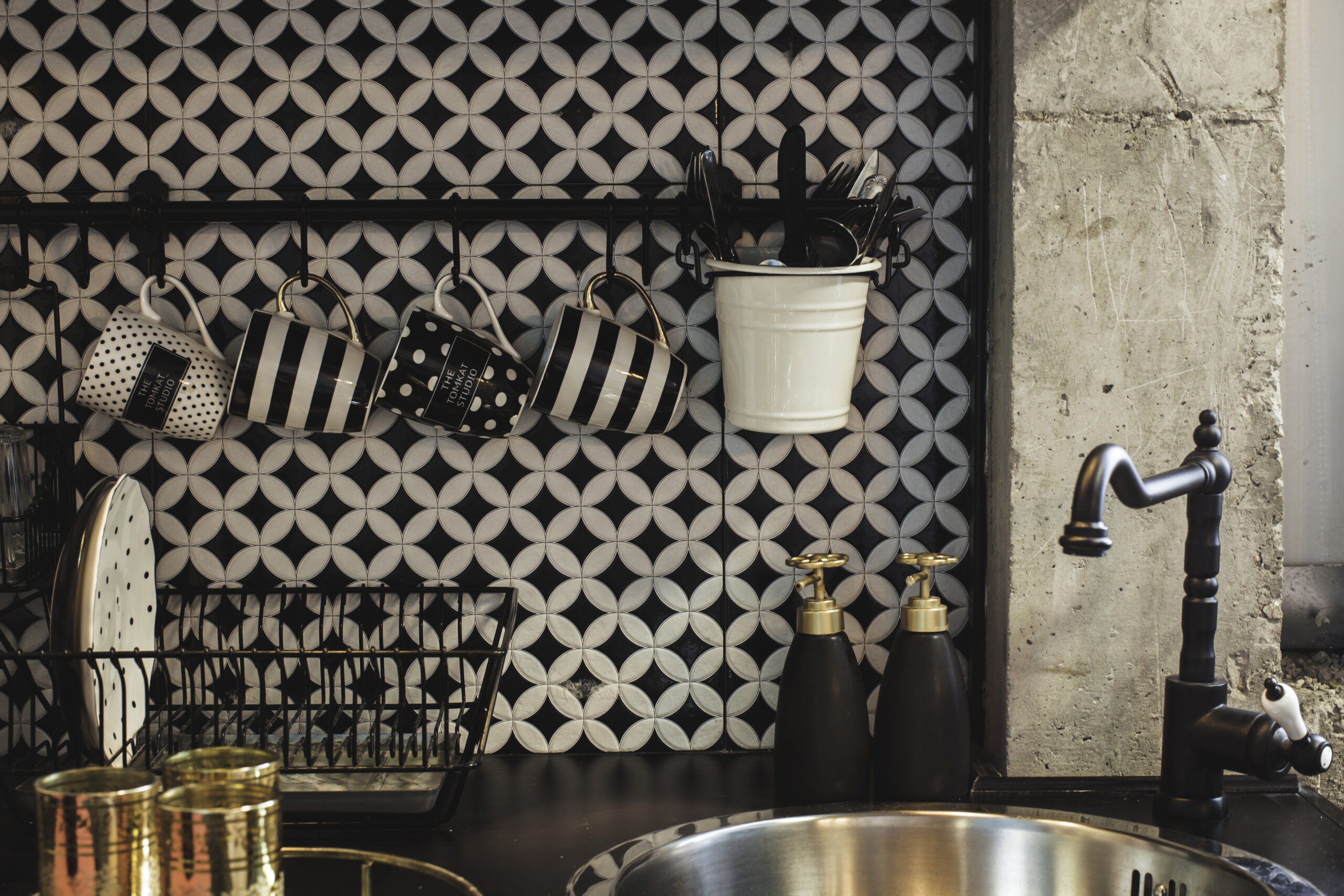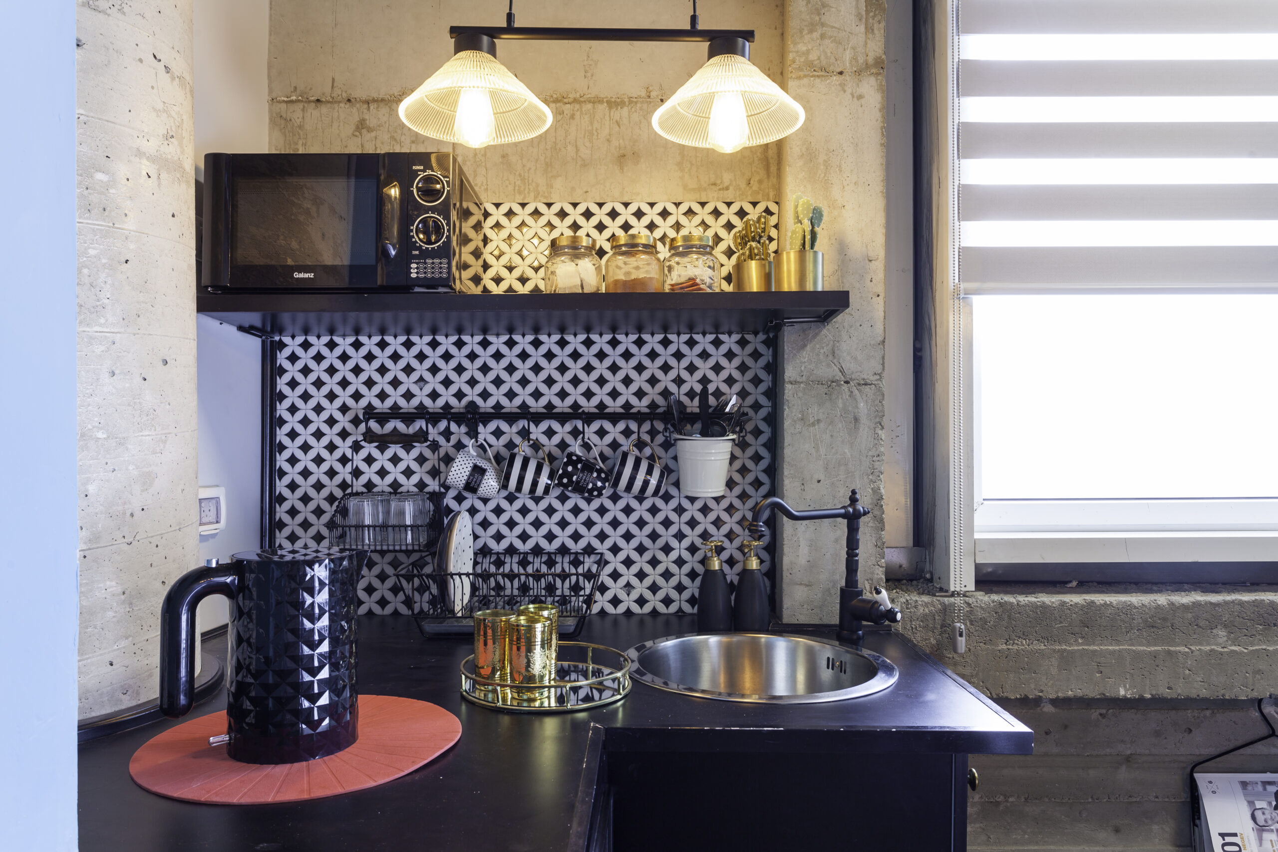 - הצד הקלאסי־וינטג'י – אריחים בשחור-לבן, גוף תאורה עתיק, ברז כפרי ופריטים עם סיפור – מאוורר "פלשתינה" מקורי, מעמד עיתונים משנות ה־50, חפצים נוסטלגיים שמוסיפים חמימות ותחושת בית.