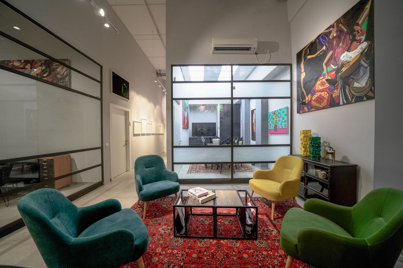 העיצוב התבסס על שפה תעשייתית מחוספסת עם נגיעות חמות. שילוב חומרים כמו בטון, ברזל וזכוכית בגווני אפור ושחור, לצד טקסטיל צבעוני, כורסאות מרופדות, שטיחים ותמונות – יצרו איזון בין מודרניות לקרבה אנושית.