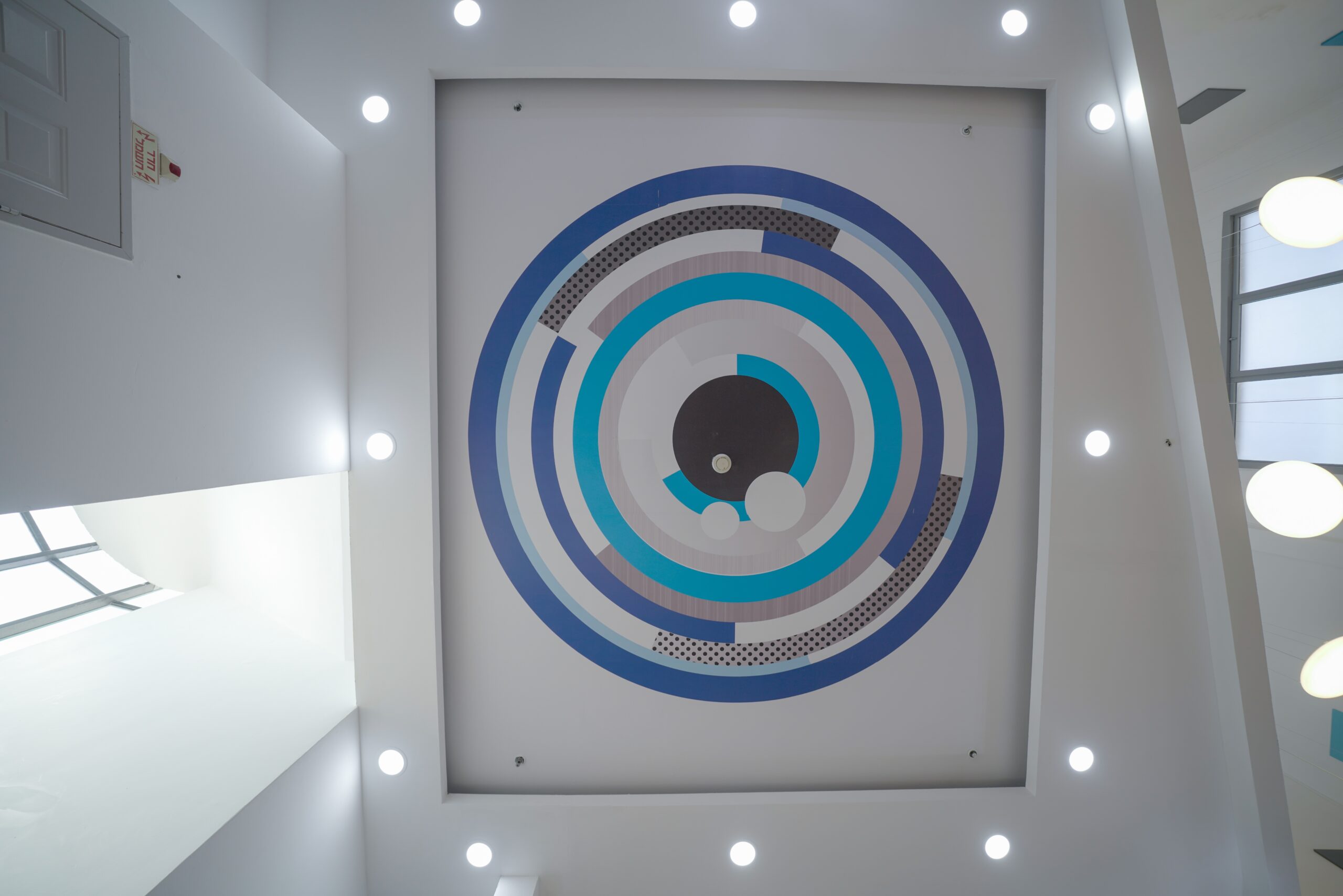גופי תאורה תלויים המדמים קפסולות חלל העניקו עומק וטון עתידני לחלל הכפול־גובה.