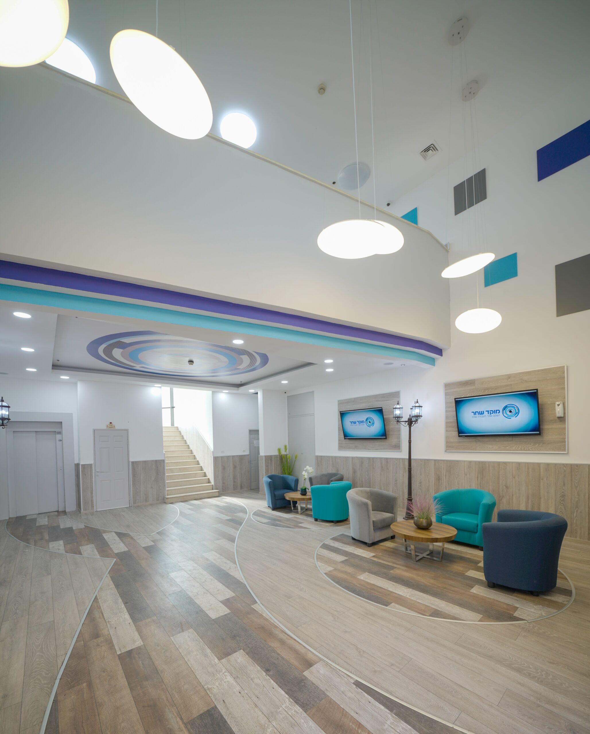 הפרויקט הושלם עם פינות ישיבה נעימות בגוונים תואמים, שיצרו אווירה מקצועית אך נגישה.