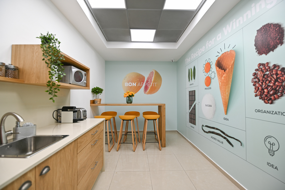התוצאה: משרד שמעוצב כולו בהשראת העולם הקולינרי בשילוב גישה טכנולוגית צעירה.